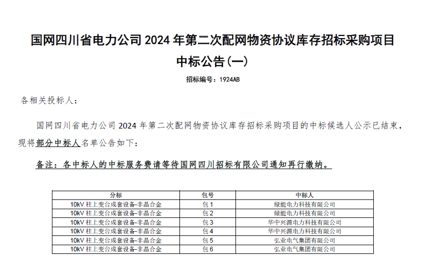 【中標喜訊】熱烈祝賀我司中標國網四川省電力公司2024年第二次配網物資協議庫存招標采購項目