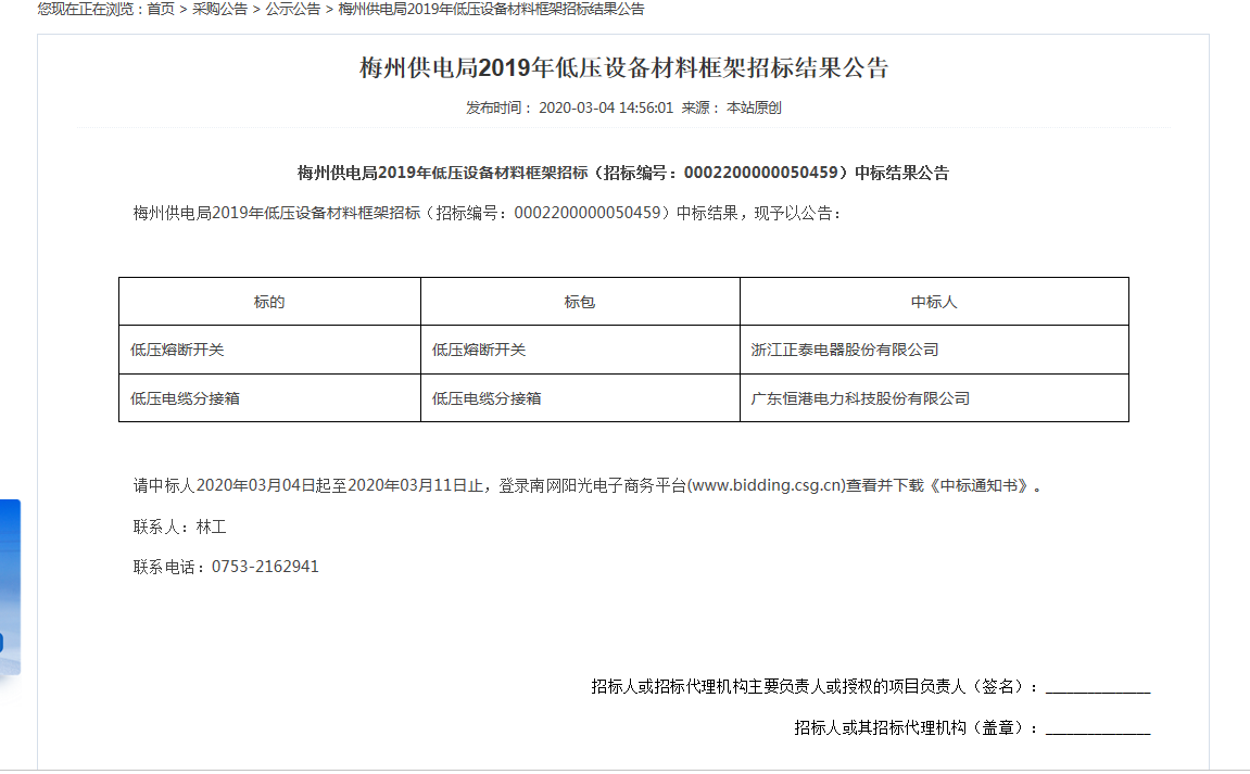 Congratulations to our company on winning the bidding of low voltage equipment and materials framewo